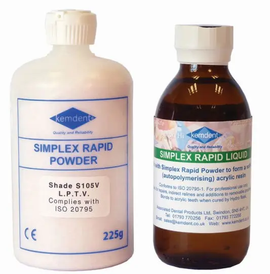 مسحوق الأكريليك السريع Simplex من Kemdent عبارة عن أكريليك معالج على البارد يستخدم للإصلاحات وإعادة الخطوط والإضافات إلى أطقم الأسنان. يُظهر قوة ربط عالية لأطقم الأكريليك بجميع أنواعها. يمتزج بسهولة مع Simplex Rapid Liquid، ويعالج بسرعة باستخدام تقنيات المعالجة بالقارورة المائية أو المقعدة. يُستخدم مع سائل Simplex Rapid الذي يُباع بشكل منفصل؛ رموز المنتجات KEM27520 (150 مل)، KEM27521 (500 مل)، KEM27522 (1 لتر) وKEM27523 (5 لتر)