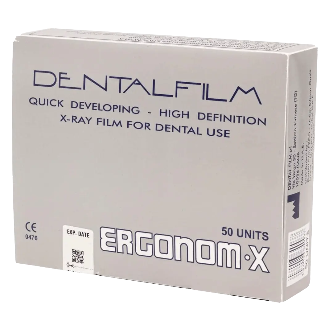 يسمح لك الفيلم الذي يتم تحميضه ذاتيًا بالحصول على صورة واضحة تمامًا , يستغرق الأمر فقط 50 ثانية للحصول على صورة ساطعة، يتم تطويرها وتثبيتها على الفور بجانب الكرسي. لا يتطلب الأمر محاليل ومعالجًة و غرفة مظلمة. يعد Ergonom-X نظامًا احتياطيًا مثاليًا في حالات الطوارئ أو (فشل وتعطل أنظمة الأشعة). يتم وضع الفيلم الأحادي في حاوية مرنة خاصة مصنوعة من مواد ذات حاجز عالٍ تضمن الحفاظ المثالي على الخصائص الكيميائية لأكثر من 18 شهرًا.