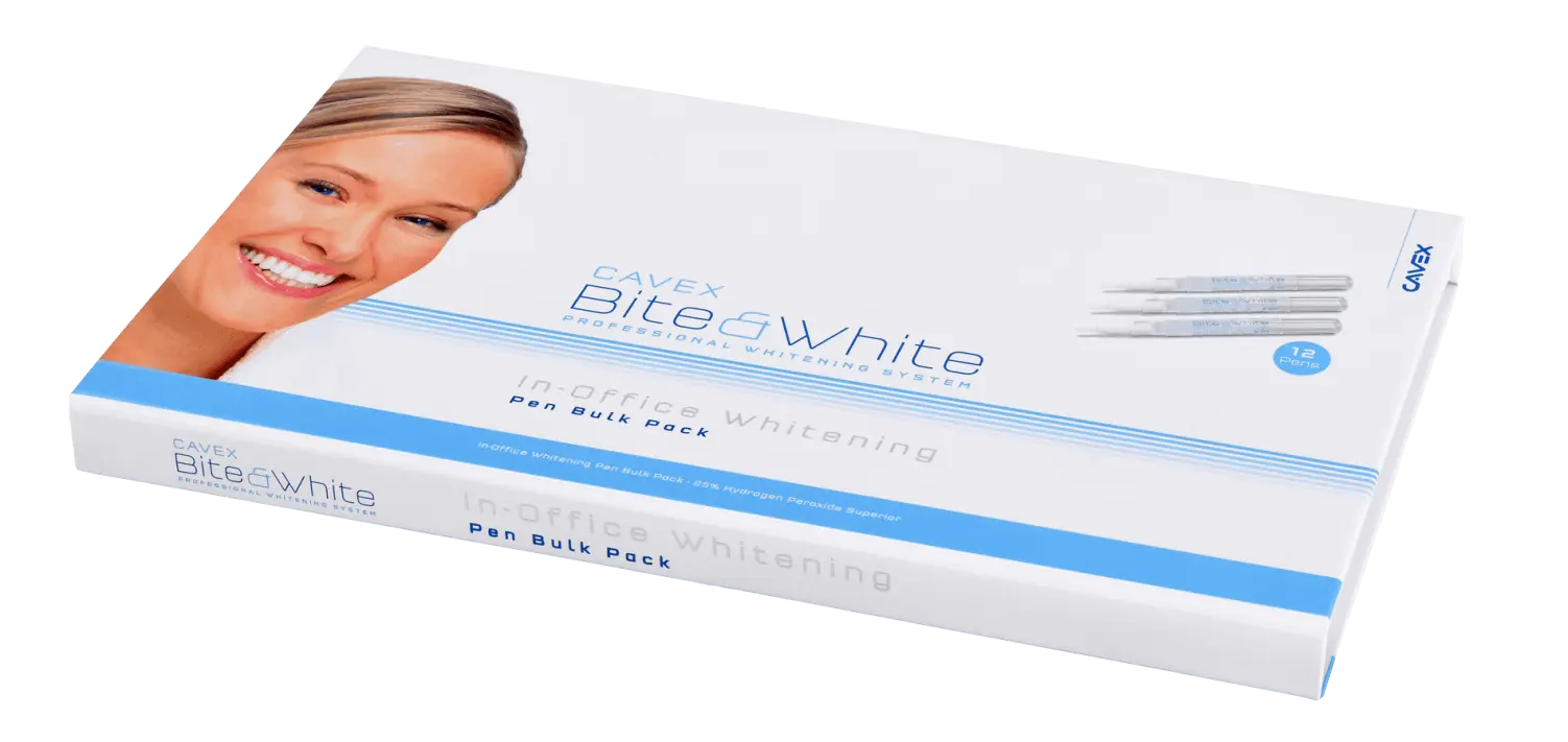 أقصى نتيجة تبييض مع الحد الأدنى من الحساسية؟ هذا هو نظام Cavex Bite&White داخل المكتب. يعتمد جل التبييض على تقنية بيروكسيد الهيدروجين الفائقة (HPS) الثورية، والتي تحقق نتائج تبييض غير مسبوقة بنسبة 25% من بيروكسيد الهيدروجين. باستخدام جل HPS السريع والفعال للغاية، يتم تحقيق أقصى نتيجة تبييض في جلستين أو ثلاث جلسات فقط!